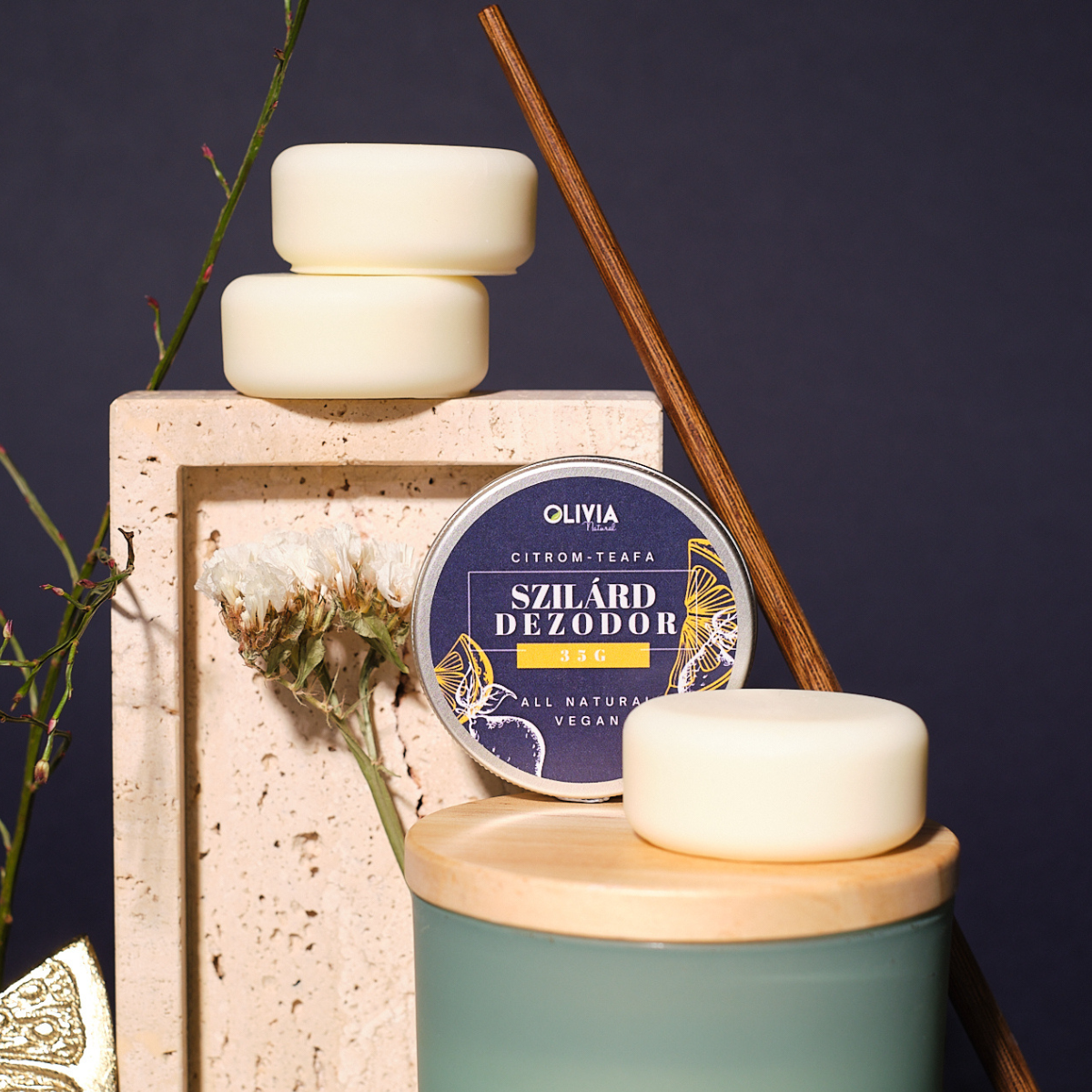 Kompakt, természetes szilárd dezodor gondosan összeválogatott, hatékony alapanyagokkal low waste szemléletben. Kizárólag natúr, vegán összetevők felhasználásával dezodorál és nyújt hatékony megoldást az izzadás kellemetlenségeivel szemben. Szódabikarbónával, a citrom és a teafa hihetetlenül friss illatával, minden bőrtípusra és alkatra. Erős hatékonysága miatt sportoláshoz is ajánljuk! Használata egyszerű: csak húzd végig a tiszta, száraz bőrödön. Kicsi, praktikus kiszerelés, nagy hatékonyság, fenntartható, vegyszermentes dezodorálás. Védelem és gondoskodás a bőrnek és a környezetnek.
