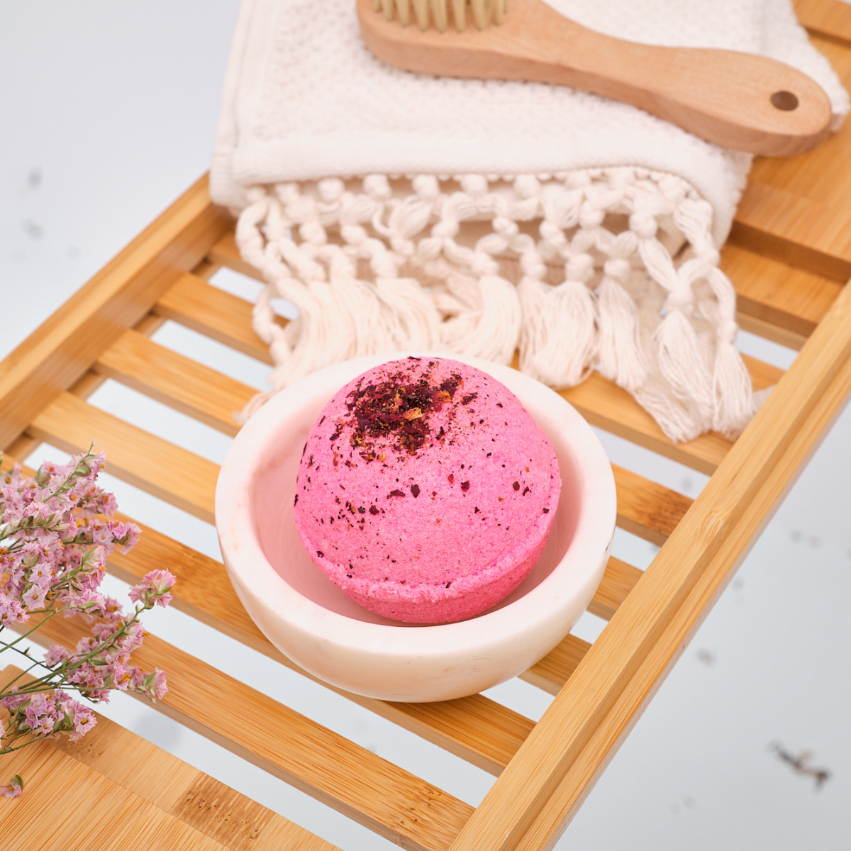 Ha nem szeretnéd, hogy a fürdőgolyóban található virágszirmok is szétússzanak a fürdővízben, tedd a fürdőgolyót egy textilzsákba mielőtt bedobnád a fürdővízbe.