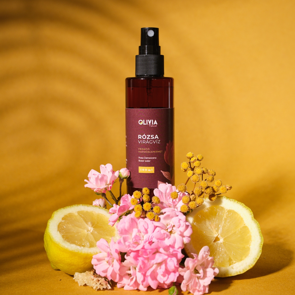 - Az Olivia Natural természetes Rózsa Virágvíz bio minősítésű, a rózsaszirmok illóolaj készítésénél keletkezett, tiszta növényi víz.