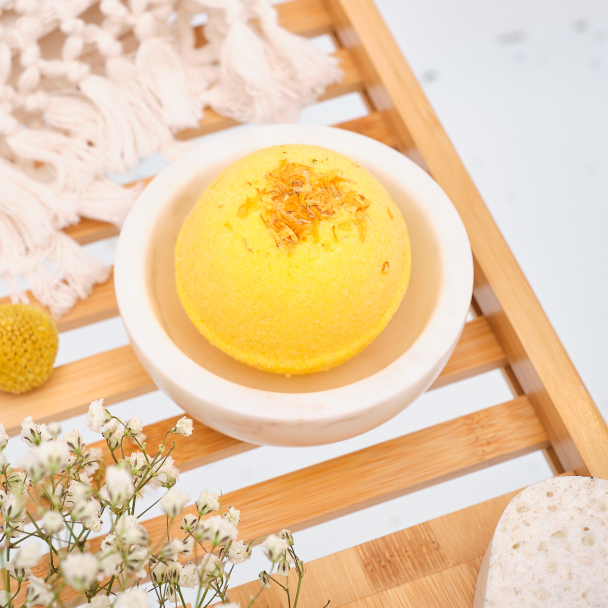 Ha nem szeretnéd, hogy a fürdőgolyóban található virágszirmok is szétússzanak a fürdővízben, tedd a fürdőgolyót egy textilzsákba mielőtt bedobnád a fürdővízbe.